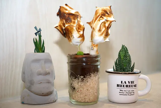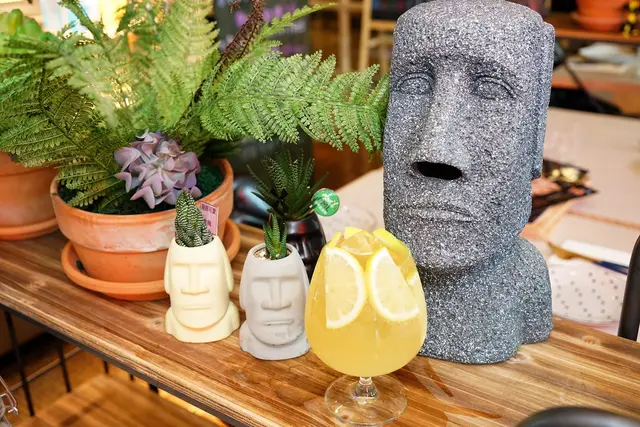 棉花糖的雲朵天空、繁天花朵、隨處可見的草地與盆景還有最夯的摩艾公仔