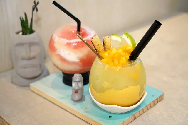 吸管大口吸還吃得到裡面的芒果果泥,置身熱帶島嶼度假的悠閒感