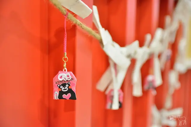 周邊也吊掛起日本神社會有些綁在繩上的籤詩與御守。