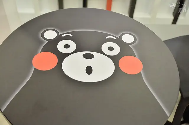 熊本熊咖啡Kuma Cafe店內約有22個座位,高腳桌是熊本熊的圖案,其他桌椅則是素色的白方桌。