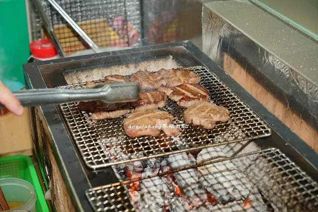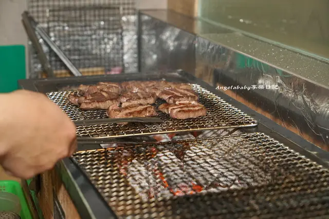 厚切牛舌吃起來才過癮,炭烤到外層鐵網上色裡頭的牛舌呈現粉紅