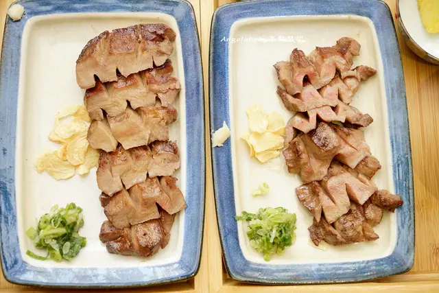 兩份定食隨之端上桌:上圖為阿諾牛舌定食、下圖為小法師牛舌定食
