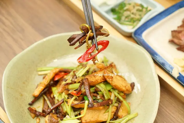 客家小炒也可以很高雅不油膩,滷過切絲的牛舌搭配豆乾絲芹菜大火快炒