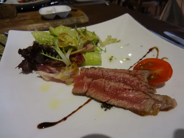 三片色澤很漂亮的沙朗牛肉片搭配簡單的沙拉