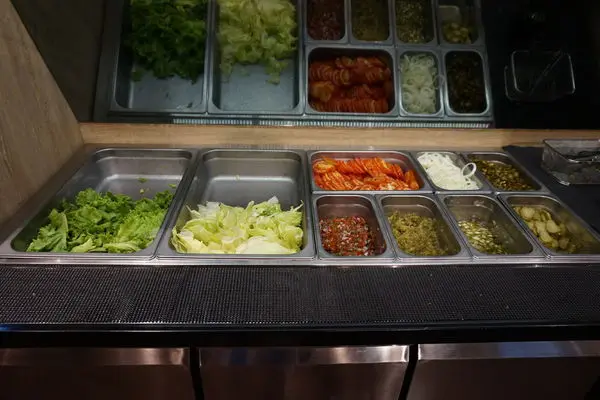 就是有一區生菜區,有蘿蔓葉、美生菜、蕃茄、生洋蔥及醃料,