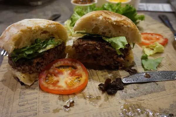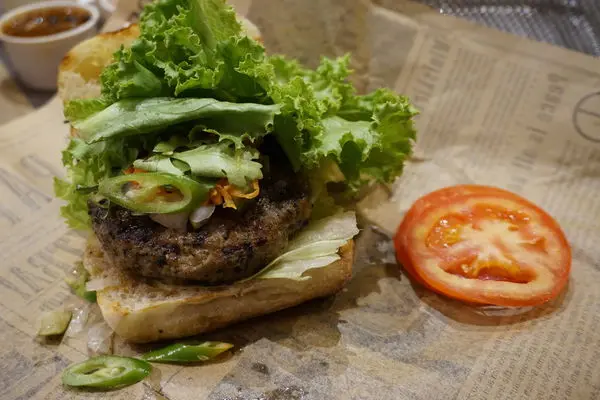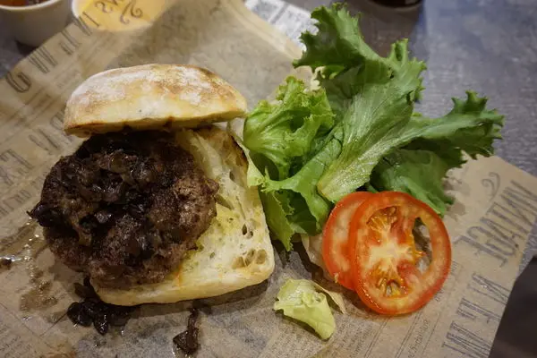 不同於鬆軟的油皮漢堡,巧巴達麵包咬起來比較有嚼勁,紮實感十足