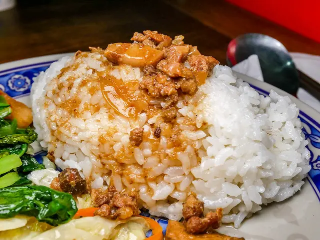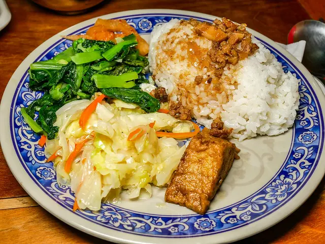 滷肉飯還可以,大概一般及格水準,但如果滷汁再多一點會更好,大概吃1/3 剩下就要靠蔬菜來配飯了