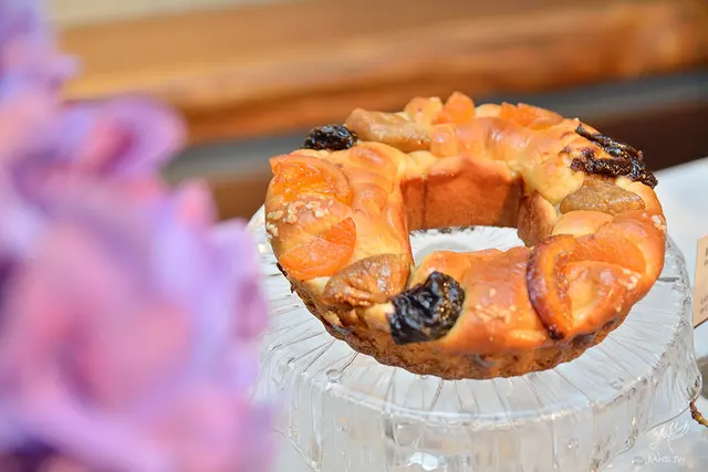國王果香麵包:口感紮實中帶點軟Q口感的布里歐麵包有搭配各式果乾,像是無花果、杏桃、加州李、橙片,因為又搭配了優格、杏仁餡、香草卡士達內餡所以讓味道不會太甜膩,風味算簡單但不錯,是想吃甜味、水果風味麵包時的另種選擇。
