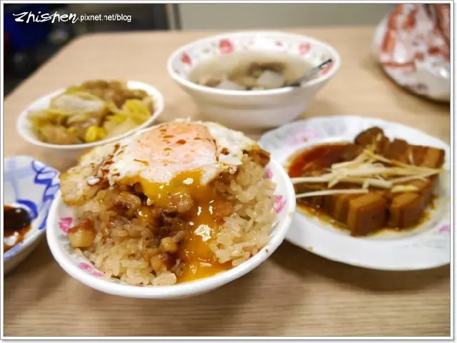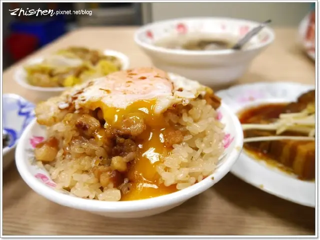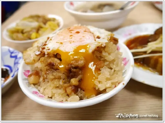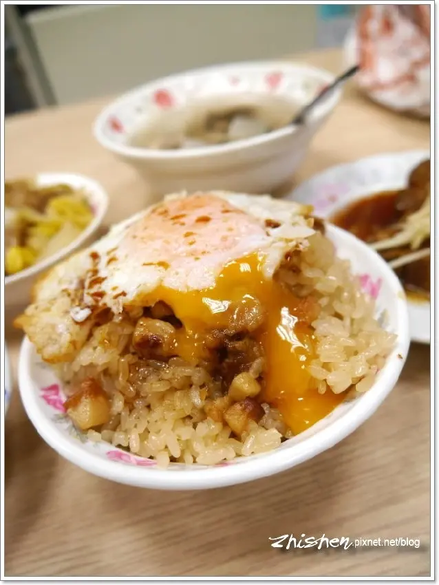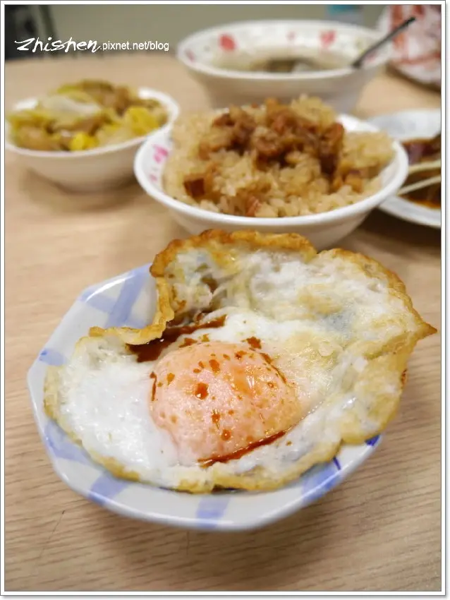 Ω就如同前面說的,半熟荷包蛋千萬別直接喀掉,把它挾到油飯上頭輕輕一撥,讓滷肉油飯+半熟荷包蛋的蛋黃來個完美結合,才是傳聞來這裏最好的搭配選擇。