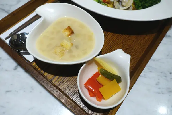 除了主食之外,還附有濃湯青椒小品均衡一下。