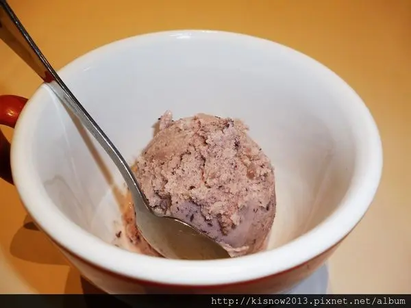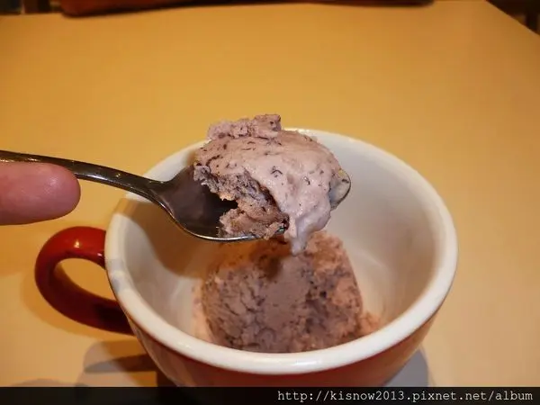 每一齣甜點大戲,主角出場前,總要先暖身一下,這次也不例外,這次除了冰晶甜心(荔枝冰磚),我還有點一道手工冰淇淋,手工冰淇淋我是選擇紹興紫米口味,一球約69元,可惜冰淇淋不是用餅乾杯盛裝,而是用一個大大的咖啡杯,甜蜜的氣氛有點降低.