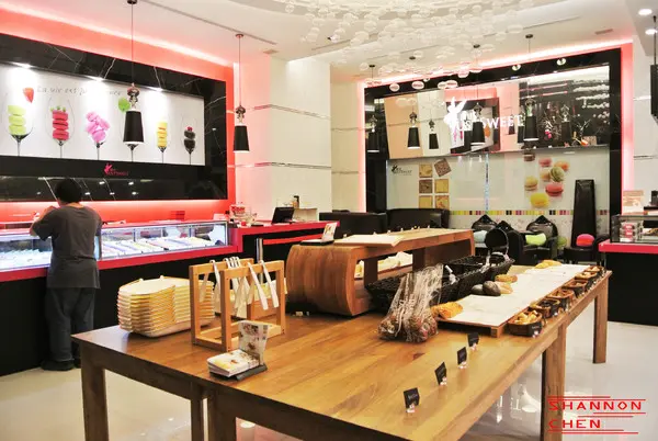 中間是麵包~左邊就是馬卡龍.蛋糕等等~需要冷藏的甜點~