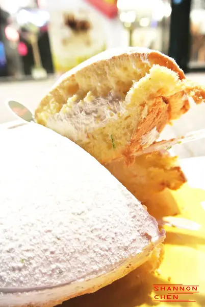 他吃起來有檸檬的味道!!!不知道是蛋糕還是奶郵友加入檸檬的感覺!!