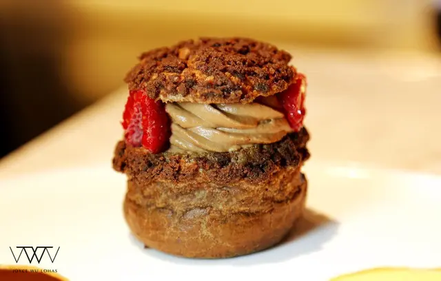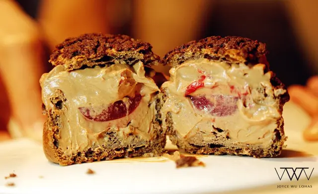 法式泡芙皮外層特別烤上一層菠蘿酥皮,這種皮吃起來又香又酥也是我跟友人最喜歡的泡芙種類