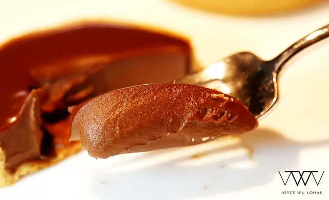 塔皮本身非常薄脆,入口是濃醇衝腦的巧克力,閉眼慢慢感受那一層層不同味道的香氣和隱味