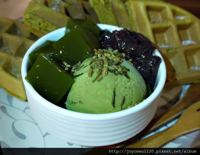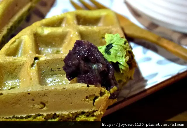 鬆餅本身偏乾 可搭配旁邊的抹茶冰淇淋或紅豆泥一起享用 整體味道較好