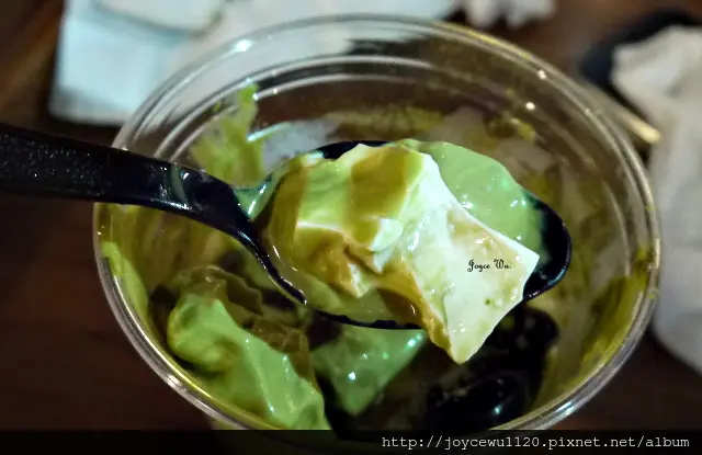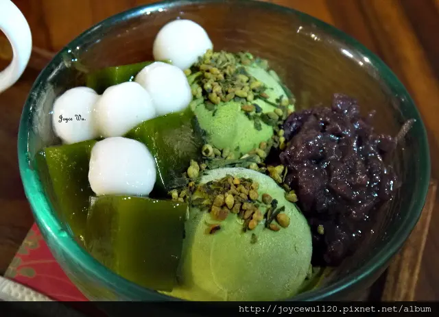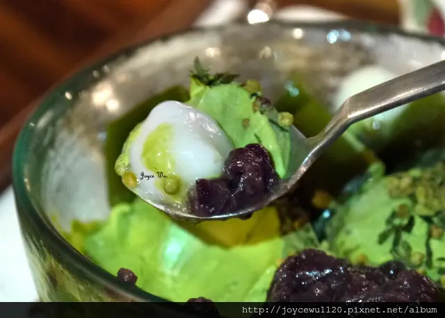 冰淇淋抹茶味濃厚 本身不甜 搭配上微甜綿密的紅豆泥 及Q軟的白玉麻糬