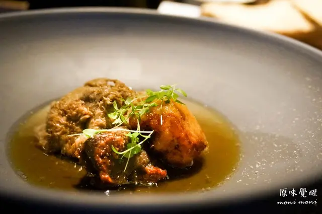 當時餐廳舉辦了比賽,讓大家自行研發新菜,而這一道料理也是當時江振誠創作得獎的成名作。