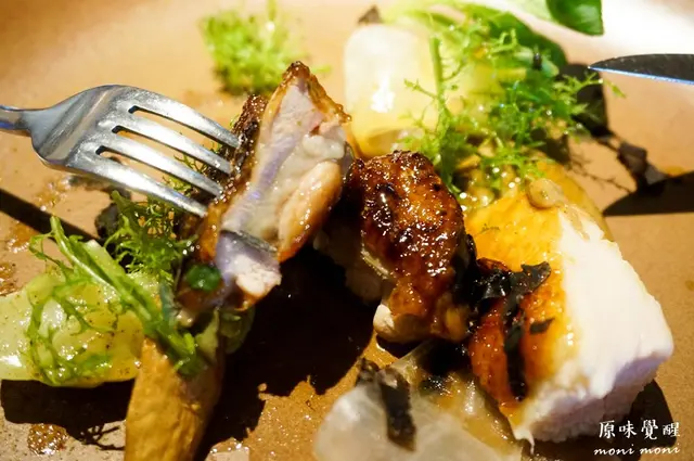 這道主菜,不是選一般的牛排,反而是選用苗栗飼養120天的放山雞,
