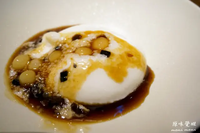 淋上焦糖、黑松露、桂圓、湯圓熬煮的醬汁,有點像是在喝湯圓的感覺。