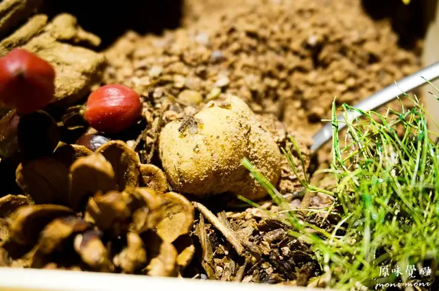 原來是松露白巧克力藏身在這一片土壤之中,而這些都是可以食用的可可粉。