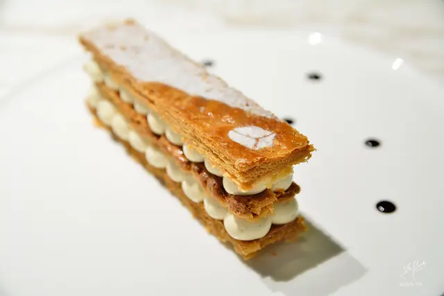 現點現做的千層派,口感酥脆不黏牙不油膩,吃的到焦糖香氣,是味道很分明的派皮。
