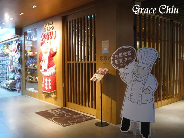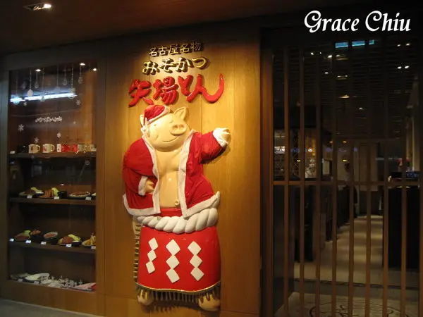 主打味噌豬排的矢場とん在店裡店外都有可愛的小豬企業形象標誌圖,門口原本打赤膊的小豬最近還應景的變成聖誔小豬了呢.
