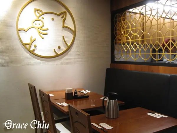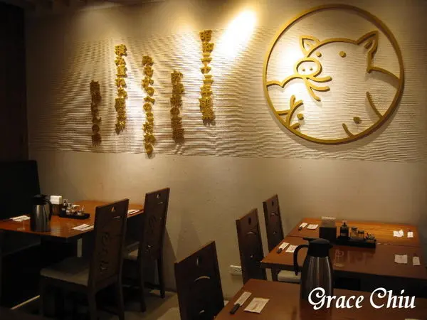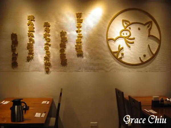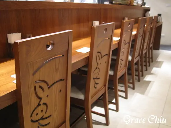 有沒有看到小區座位與廚房空間做區隔的鏤空窗格窗花是以豬蹄為意象造型!每把座椅的背板也都有刻劃著小豬紋路,卡哇依~