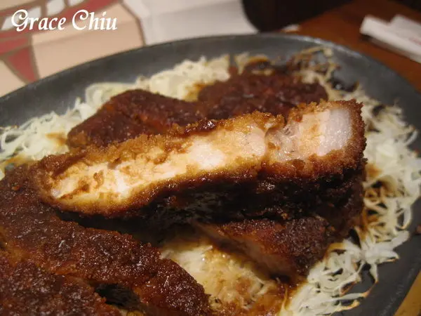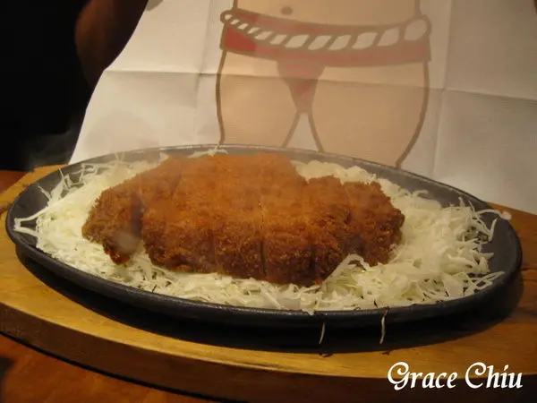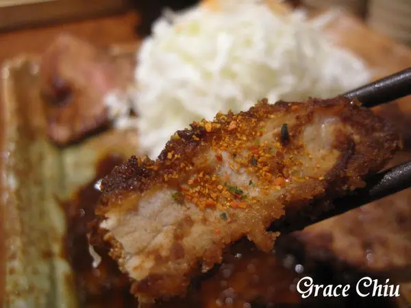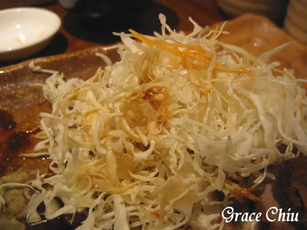 味噌腰內豬排附上的生高麗菜絲淋點桌上的和風柚子沙拉醬吃起來清脆爽口,柚子香氣濃厚,若能同時提供胡麻醬我會更喜歡^^.