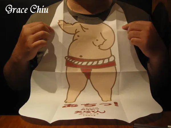 店家貼心的提供可愛紙圍兜給有點鐵板餐點的顧客