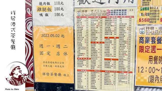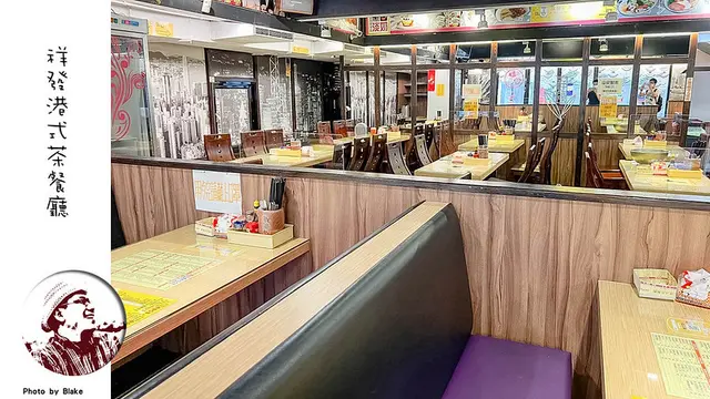 《祥發港式茶餐廳》主要有分成一二樓的用餐空間,可是主要是在二樓,大多都是四人桌為主,一樓雖然有座位但來過幾次通常都沒有看到有人坐在一樓,《祥發港式茶餐廳》疫情前生意很好,每次來幾乎二樓都是坐得滿滿的,這次平日中午來完全沒有人,整個中午只有一桌客人,《祥發港式茶餐廳》營業時間是從11點半到晚上9點,現在每周是休周一跟周二。