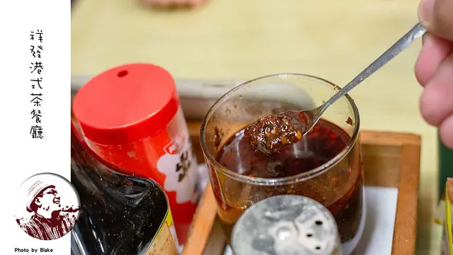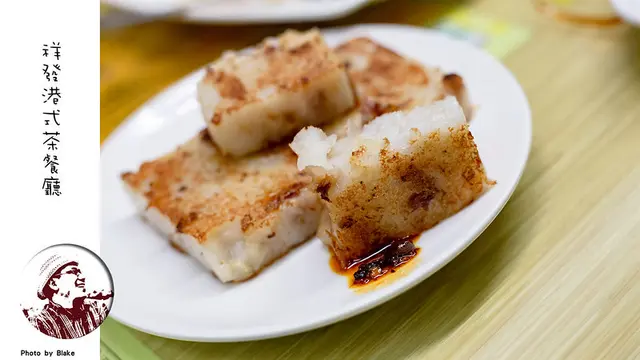 《祥發港式茶餐廳》的蘿蔔糕是那種傳統的港式蘿蔔糕,本身可以買回去自己煎,口感就像是港式那種比較軟嫩一些,外層是有煎到恰恰還不錯,裡面有蝦米跟臘肉,鹹香感很足,記得一定要用桌上的辣醬,味道會更重一些,吃起來鹹辣很不錯。