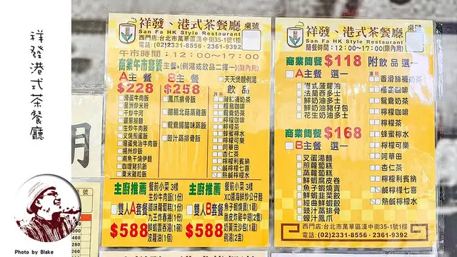 《祥發港式茶餐廳》算是台北茶餐廳老字號,之前在台北有兩家分店,一家是在西門一家在大安,只是現在《祥發港式茶餐廳》大安店已經收了,只剩下西門這一家,《祥發港式茶餐廳》西門店就在西門町最熱鬧的漢中街上面,對面就是天天利與謝謝魷魚羹,從捷運西門站6號出口走過來大約是4分鐘左右,招牌跟整家店看起來都是黃色的,還蠻好認的。