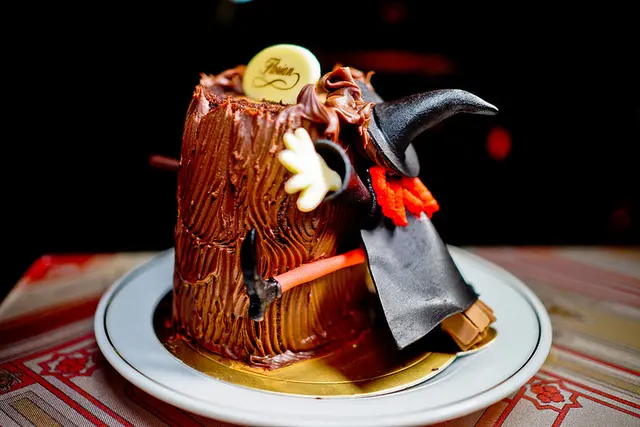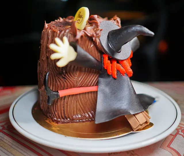 這個蛋糕超可愛的,很多人在動畫片裡應該都有看過剛學飛的巫婆撞到樹上。這蛋糕就把這場景完整重現,蛋糕稍甜一些,要配咖啡或茶一起吃。味道不錯。
