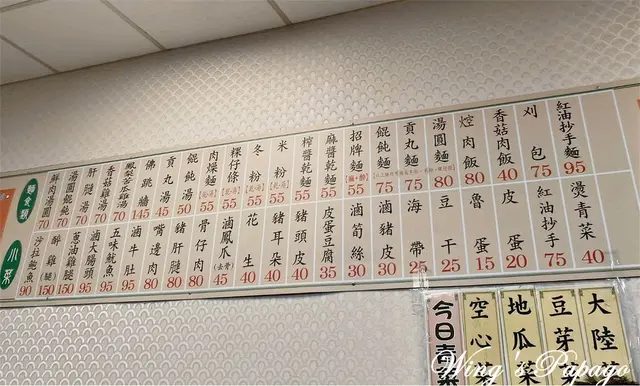 店內也有販賣焢肉飯、香菇肉飯、餛飩湯麵及各式小菜等,