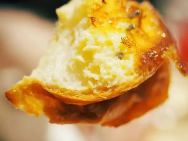 鬆軟而大的氣孔,讓吐司內裡都是滿滿滑嫩的蛋,口感有點像布丁吐司喔!