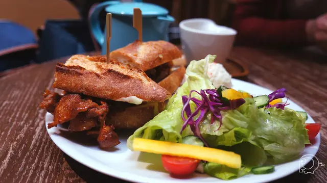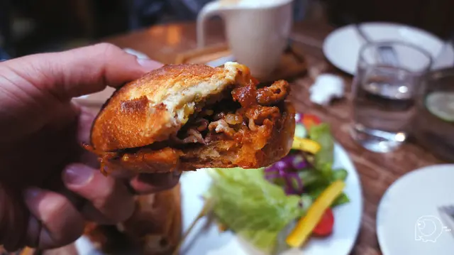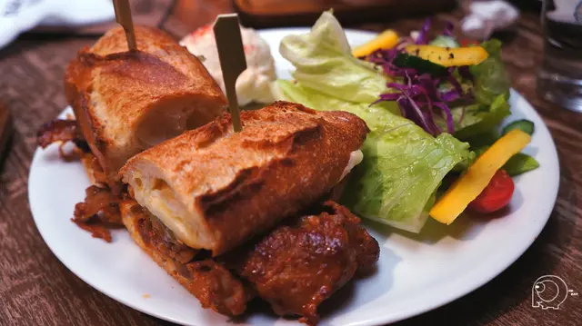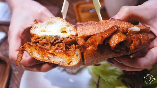 搭配上酸黃瓜、黃芥末跟起司的組合