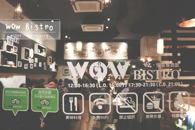 WOW BISTRO從捷運站出來走不到一分鐘就到了~簡單俐落的招牌並不難找~極簡的風格很舒服~