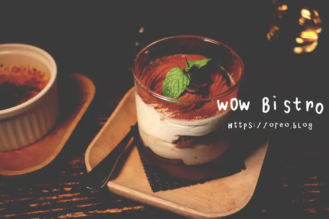 如果你想吃點甜點~他們家甜點也沒有馬虎唷~他的提拉米蘇不像普通義大利麵餐廳只用淺盤容器裝然後撒粉,完全沒有視覺上的享受,WOW BISTRO不只有不同口味分層,也用透明玻璃杯裝,看的到一層層的~還用咖啡豆和薄荷葉裝飾~實在有心先+40分~好吃再加50分~不過就是酒味不是很明顯啦~提拉米蘇是甜點之王,沒去過義大利吃我真不知道滿分應該是什麼味道~有朝一日吧哈哈哈