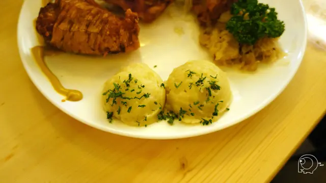 除了豬腳還有馬玲薯泥、酸菜跟沙拉