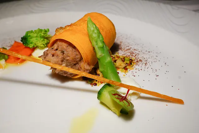 搭配酥脆的cannelloni (油炸過), 一時會連想到小時候常吃的零食『脆笛酥』,再佐上風乾番茄