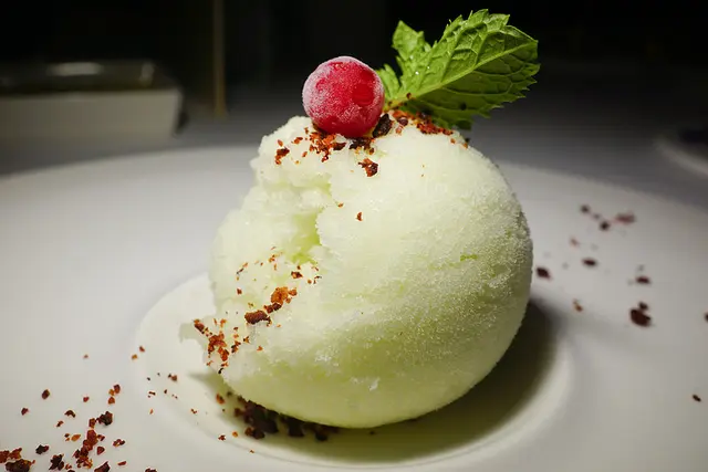 檸檬薄荷冰淇淋吃來有點像sorbet ,口味微酸甜, 不會像台灣一些連鎖餐廳搞的冰砂味道超刺激