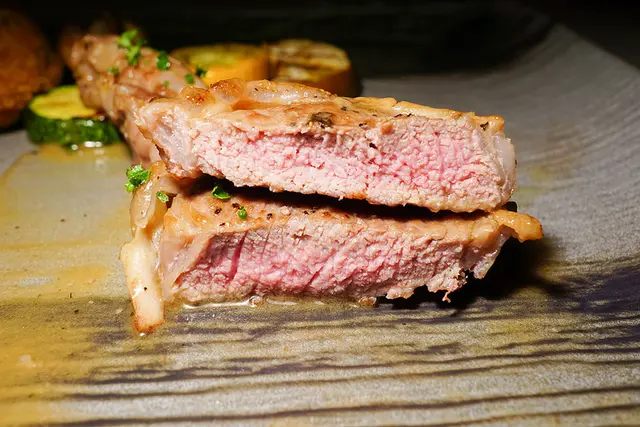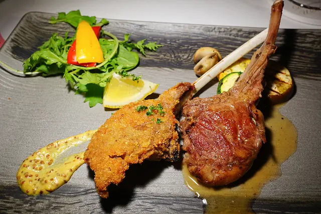 極佳的美國超鑽級羊肉羊排在炸過後鮮嫩粉紅, 肉質軟嫩, 而且更加鮮甜, 也許這就是穀物飼養與草飼的不同