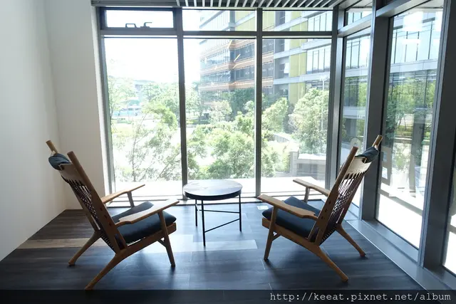 在最裡面還有一個遺世獨立的兩人座位,兩個躺椅一看就讓人感覺非常的放鬆,再加上大片落地窗跟外面的綠樹,是不是有一種小小度假的Fu呢?因為美姬很早就到咖啡店了,所以就可以選擇這個好位置。