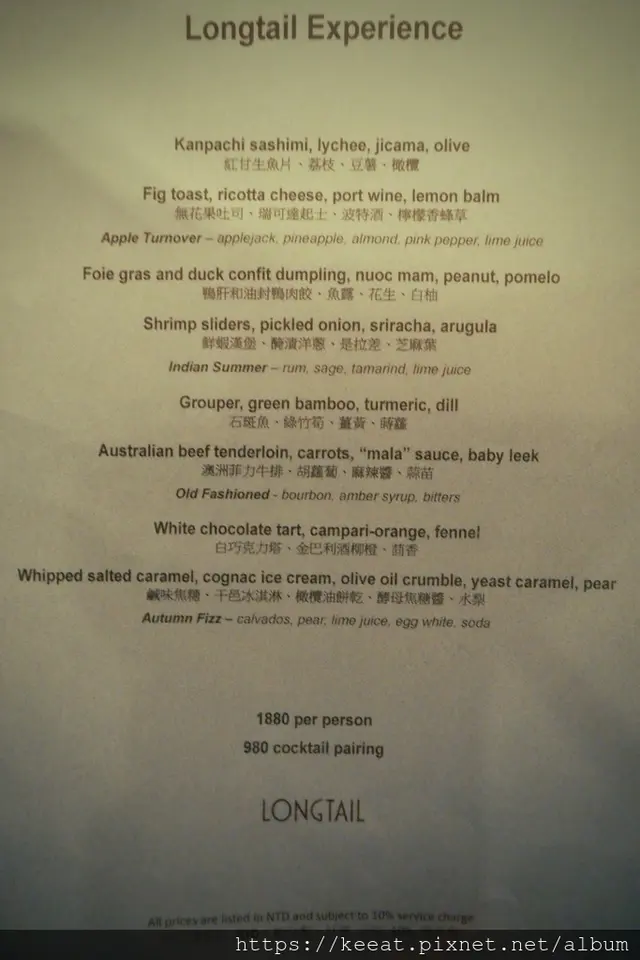 臉書才剛提醒美姬去年跟小拔還有芬姊一起去東區餐酒館吃飯、喝酒,隔沒兩天就跟原班人馬約了這攤米其林一星Longtail,本來芬姊提議這Longtail的時候,美姬還怕芬姊會訂不到位置,芬姊說有訂到~不過是吧檯的位置,重點是好姐妹們聚餐,吧檯也可以啦!