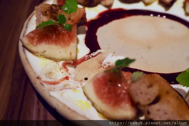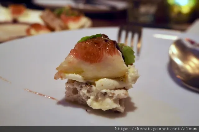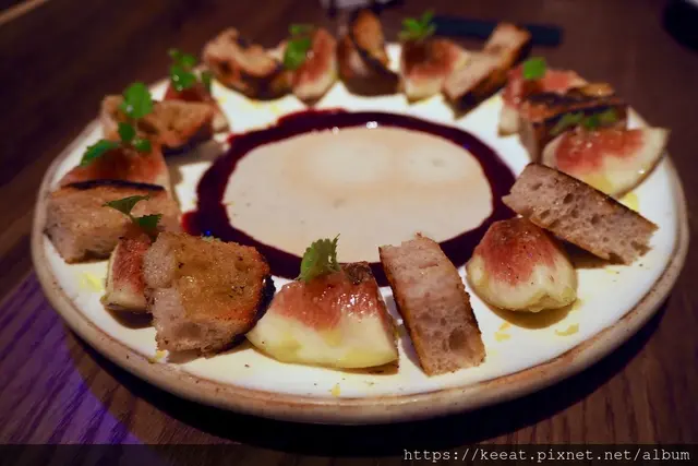 最先上來的是服務生推薦的無花果吐司($380);因為是要來吃米其林一星,所以美姬還是有先做點功課,看看其他部落客來這裡都吃些什麼餐點,結果發現大家點的都差不多,美姬自己來了之後才知道,因為那幾道菜都是服務生推薦必點菜色;這次我們有點了一個比較不一樣但是很好吃的餐點,就讓我們繼續看下去吧!