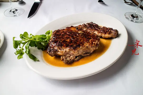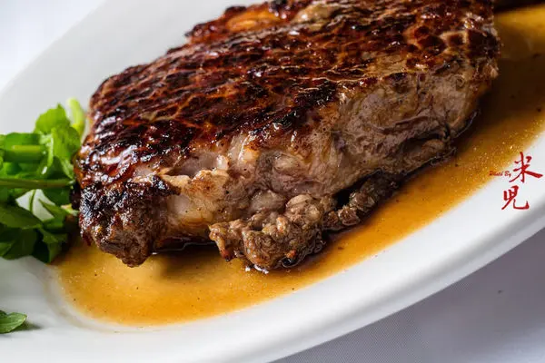 美國牛肋眼,強調烤到表皮微焦酥,但也許是沒有經過靜置再烤,吃起來略顯得硬。