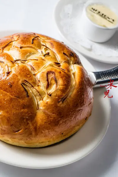 非常可口的自製洋蔥麵包,也是非常大一個,裡頭十分柔軟,愈嚼愈有味。