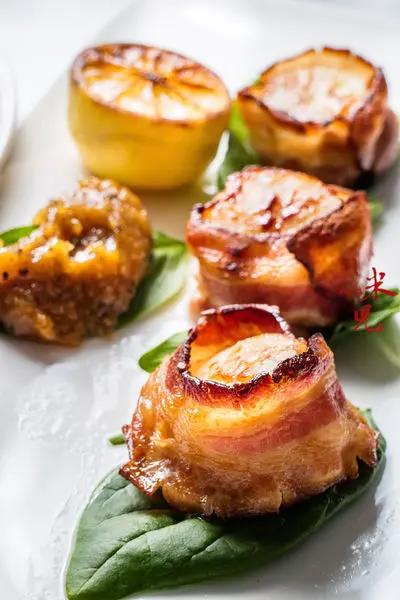 培根干貝卷,食材新鮮就很好吃,最特別的是它的醬,微酸甜很惹味。