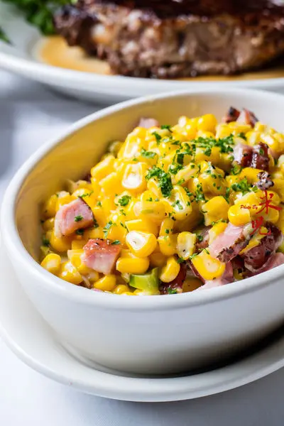 大家搶著吃的玉米配菜,甜度高、米粒嫩,搭配火腿更是惹味。